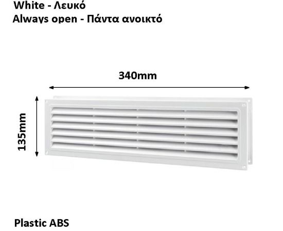Γρύλια εξαερισμού 340 * 135 mm Μονιμα ανοικτη Λευκό