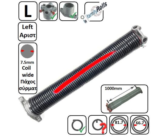 Ελατηριο 7,5 χιλ Μήκος 100 εκ Σπαστής Πορτας Οροφής 1 τεμ Αριστερό Φ 66,7 εσ Κυκλός