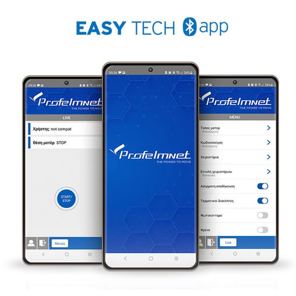 Μέσω της εφαρμoγής Profelmnet Easy Tech PRO, ο χρήστης έχει τη δυνατότητα να ρυθμίσει όλες τις λειτουργίες του αυτοματισμού από το κινητό του,