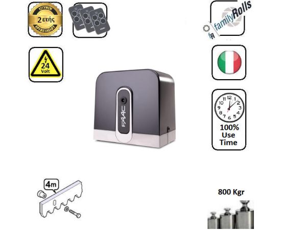 FAAC8-C721-24V-SET-04 – Μοτερ για συρόμενες γκαραζόπορτες εώς 800 Kg 24Volt