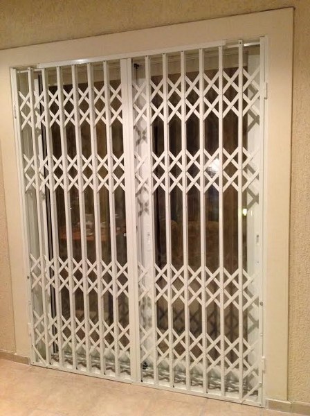 Πτυσσόμενα κάγκελα ασφαλείας κατάλληλα για σπίτια και καταστήματα.Κατασκευάζονται από χάλυβα σε τρείς κατηγορίες αντοχής, Light – Strong – Heavy. Στην κατηγορία Heavy υπάρχει η δυνατότητα κατασκευής και με αλουμίνιο.Με ορθοστάτες τύπου “Π” ή κλειστής διατομής, μασίφ χιαστή λάμα σε διάφορα πάχη & κλειδαριά 4 σημείων με απλό κλειδί ή κλειδί ασφαλείας.
